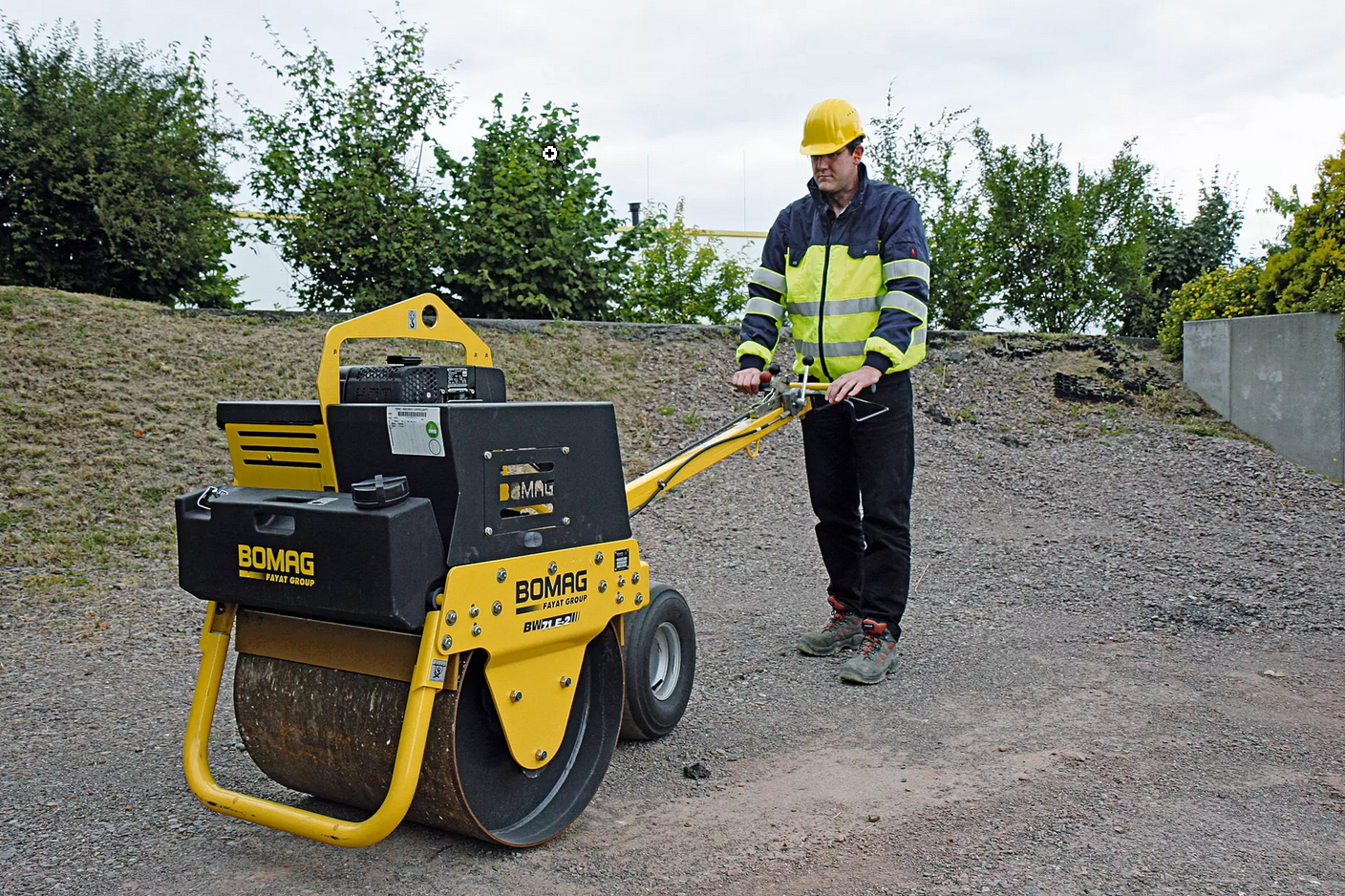 Gerade bei Asphaltarbeiten im Wegebau zeichnet sich die schwere Einrad-Vibrationswalze BW 71 E-2 dank eines großen Bandagendurchmessers von 600 mm und einer Arbeitsbreite von 710 mm durch eine hohe Oberflächenqualität und Flächenleistung aus.