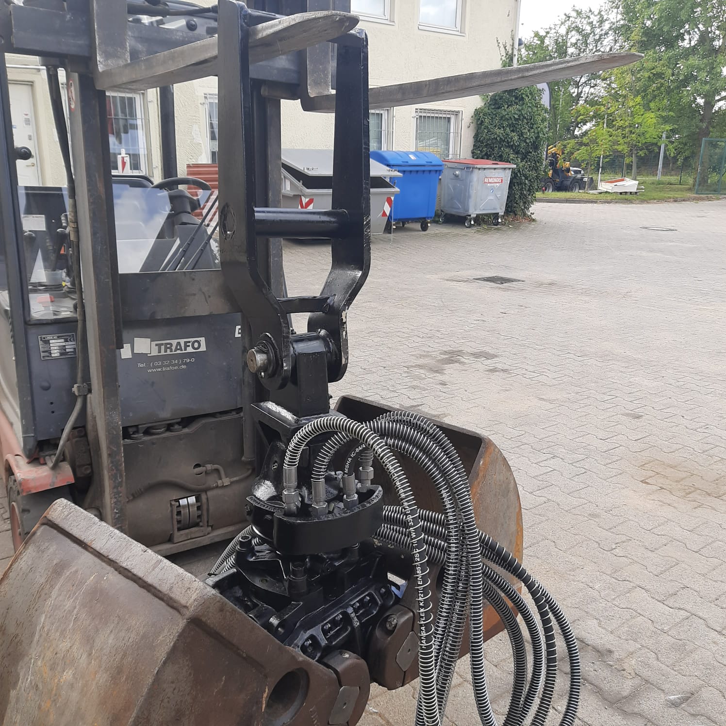 | Ausstattung | endlos drehbar, inkl. Kopfplatte MS03 mit Kreuzgelenk und Pendelbremse, Hydraulikschläuchen und Kupplungen (neu in 09/2020), optional Auswerfer und Wechselschalen |