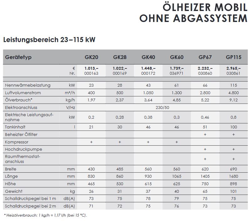 Alle Preise zzgl. 19% MwSt., Versicherung, Transport, Betriebsstoffe und Reinigung.