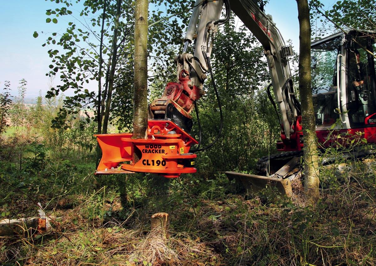 Der kleine und wendige Schneidkopf WOODCRACKER® CL ist nicht nur für landwirtschaftliche Einsätze ein zuverlässiger Begleiter. Profi-Gärtner, Forstwirte, aber auch kommunale Einrichtungen haben den Fällgreifer (auch bekannt als Baumschere) bereits in dauerhafter Verwendung. Durch die flexible und einfache Montage an gängigen Fahrzeuge werden kleine Bäume und Sträucher bis zu 25 bzw. 32 cm Stammdurchmesser mit Leichtigkeit maschinell geerntet.