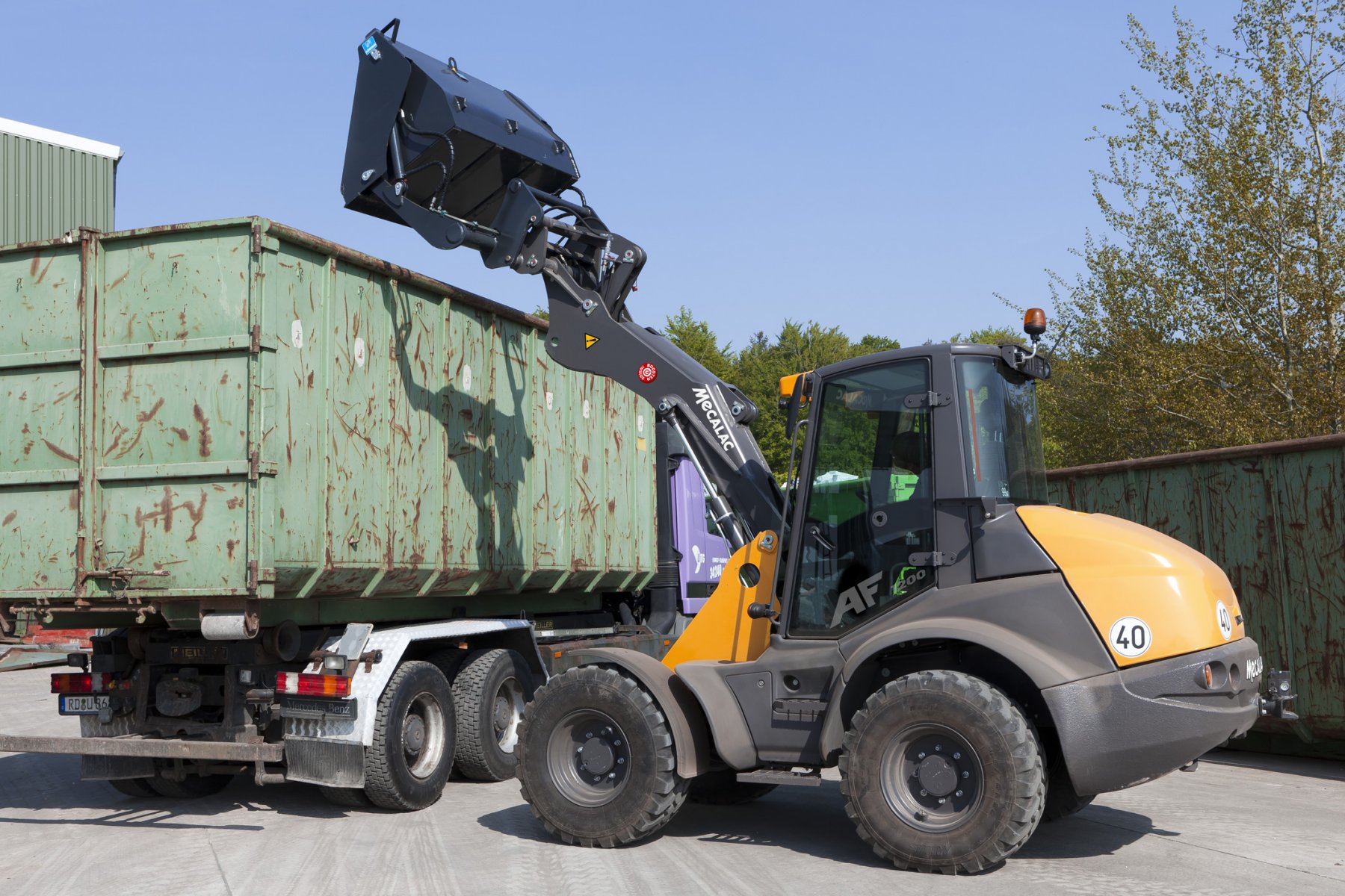 Insbesondere bei der Verladung von Schüttgütern macht sich die hohe Leistungsfähigkeit bemerkbar. Schnelle Zyklen und eine optimale Sicht auf die Anbaugeräte machen die tägliche Arbeit effizienter. Mit der leistungsstarken Zusatzhydraulik ist z.B. auch ein Einsatz von Kehrmaschine oder Plattenverdichter möglich.
