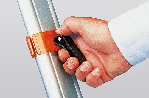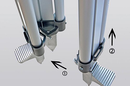 Nedo Innenausbau-Stative sind mit einem Spreizstopp ausgerüstet, der ein unbeabsichtigtes Wegrutschen der Stativbeine auch auf glatten Böden verhindert.