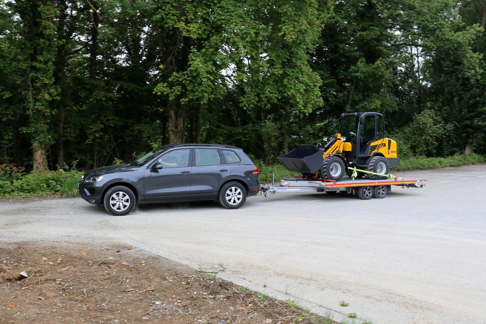 Der Radlader kann mit einer normalen PKW-Fahrerlaubnis selbst zum Bauvorhaben verfahren werden.
