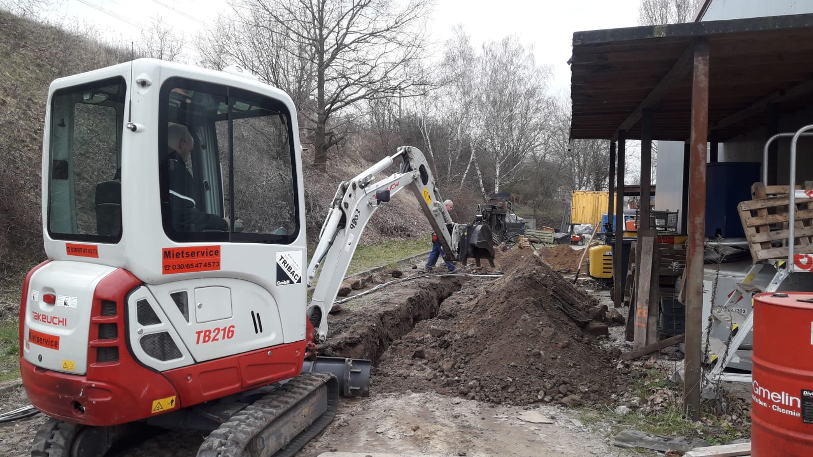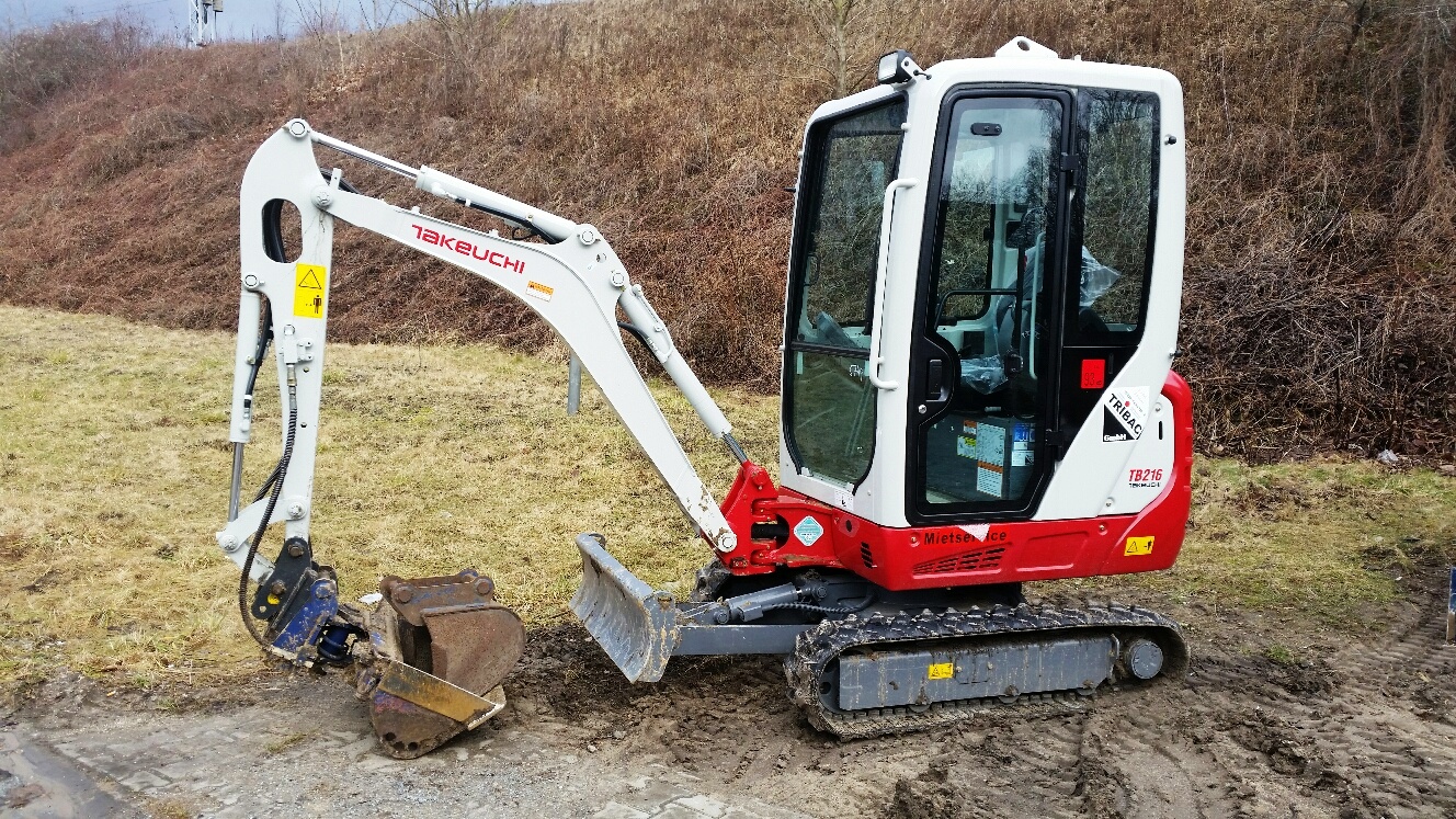 Der kompakte Minibagger ist ideal für kleinere Arbeiten rund um Haus und Garten, z.B. für Gräben für Telefonleitungen oder Wasserleitungen.